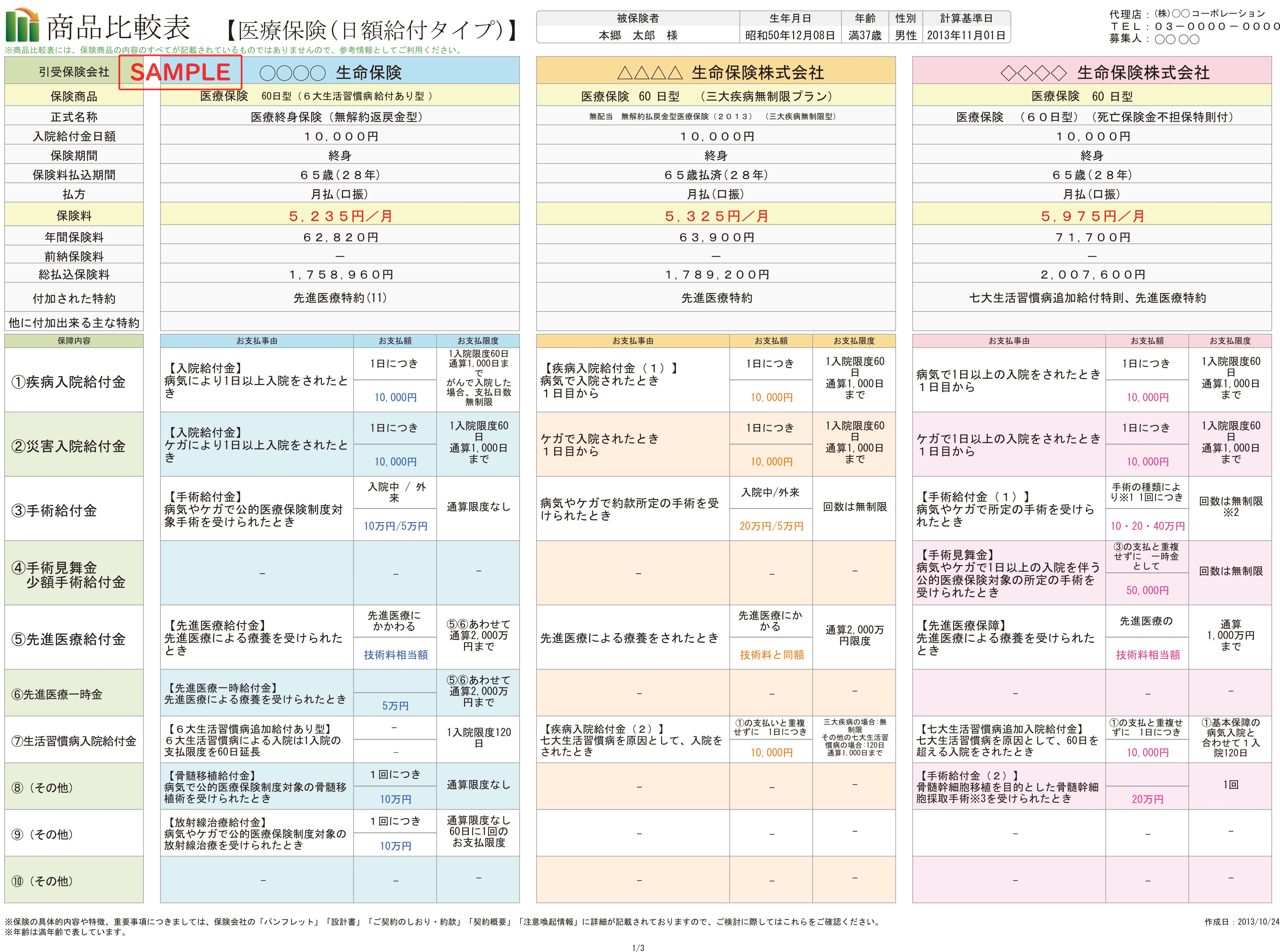 - 異なる保険会社の商品を、同一フォーム内で横並びに比較することでお客様にとってもわかりやすい資料を提供することが出来ます