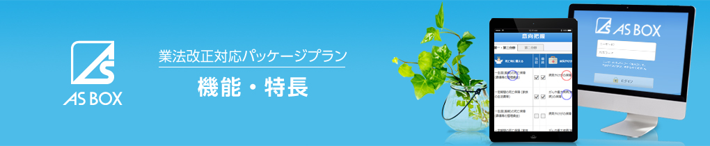 2016年5月29日施行の改正保険業法に対応するため、従来のAS-BOXの機能に「意向把握機能」、「提案履歴管理機能」を加えた「業法改正対応パッケージプラン」をリリースしました。