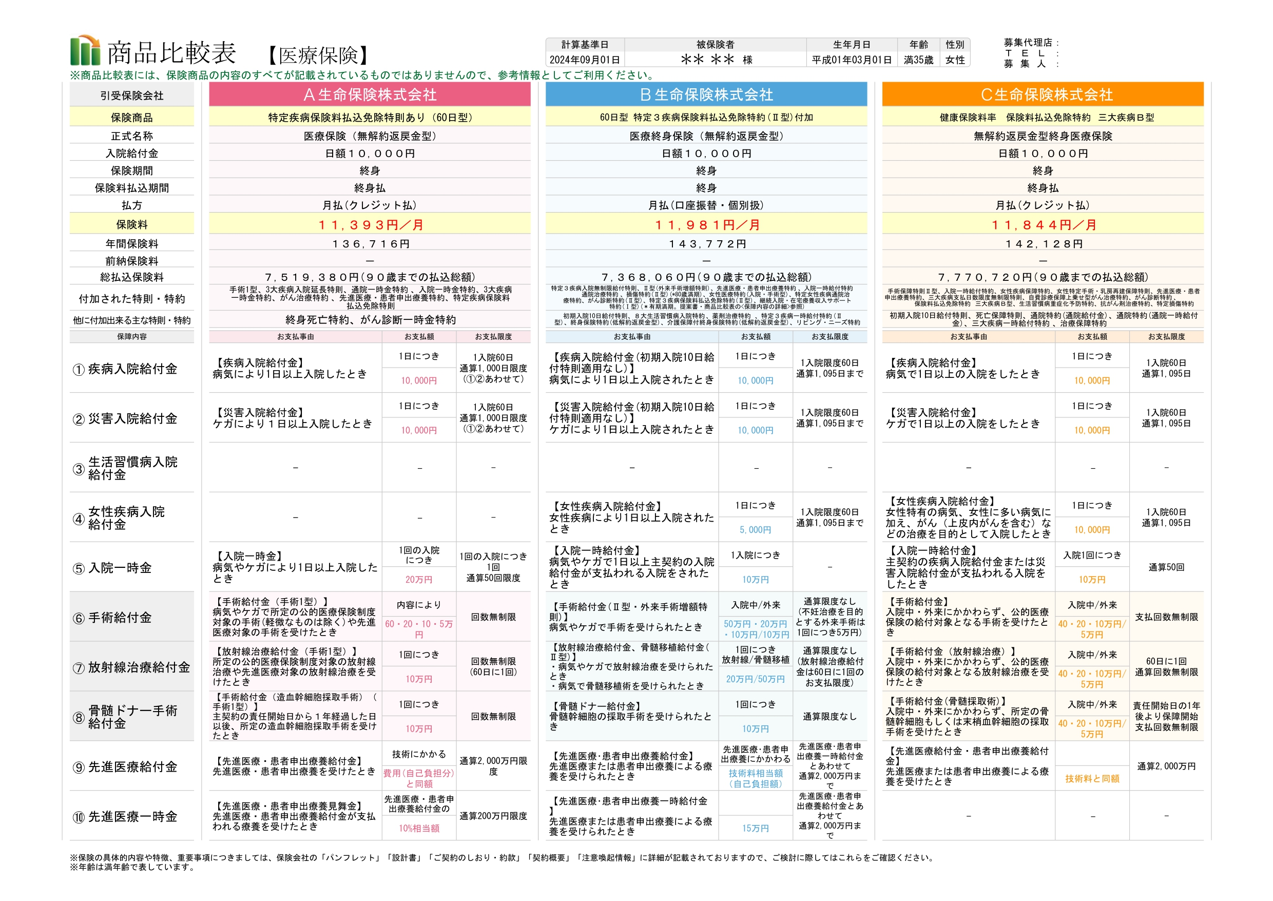 主契約や特約の保障内容を検索
