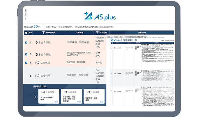詳しくは、「保障内容検索システム「AS-plus(エーエスプラス)」とは?」をご覧ください。